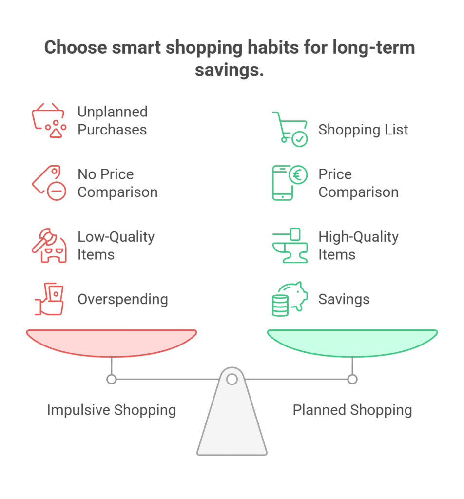 - Shopping impulsively without planning or price comparison.